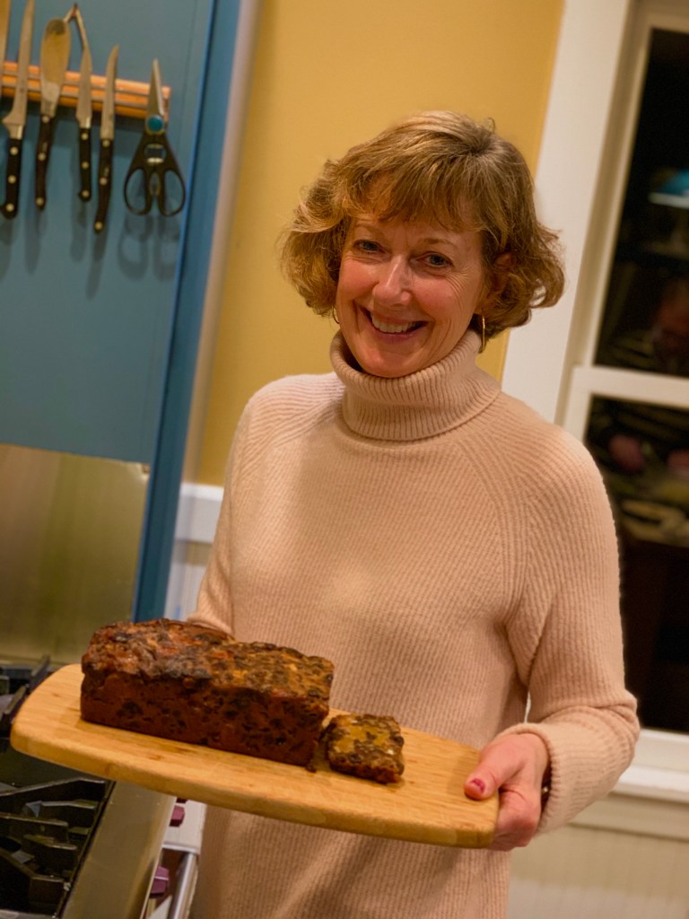 After awhile I realized my helpful comments were not being appreciated properly, so Sarah and I pinky promised to keep our thoughts regarding Kransekage to ourselves and to instead eat fruitcake and drink yet another glass of wine in front of the toasty fireplace with Axel. The guys continued to work at it in the kitchen. They made another trip to the store to buy an $8.00 bag of powdered sugar. Rolled it differently and created a beautiful Danish Kransekage! God Jul!