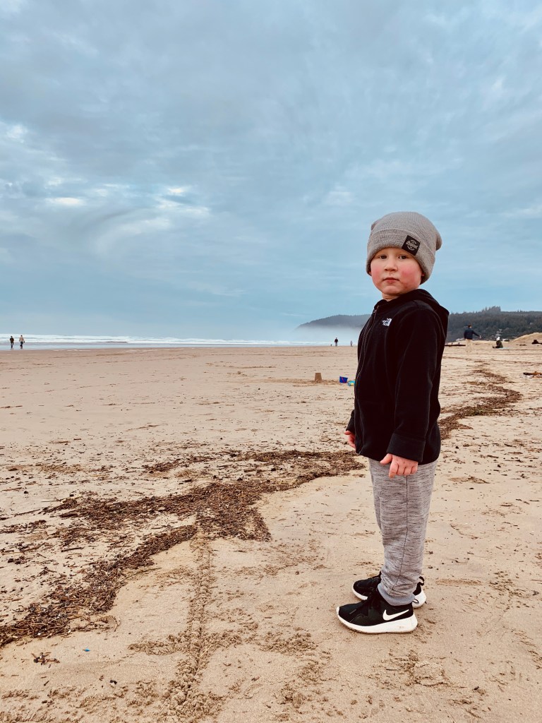 The next morning Scott, Gracie, and I decided to take Weston to the Tillamook Cheese Factory. Sarah was sooooo sick by this point. She drove to Astoria and went to an urgent care. Strep Throat. Turns out she had strep throat. On the drive to Tillamook, Gracie tentatively says her throat hurts too. We drive her to the urgent care in Tillamook. Yep she had strep throat too. Scott has been feeling crappy too, so we dropped Weston and Gracie off with Sarah in the muggy little motel room and I took him to an Urgent care in Manzanita. He did not have strep, but he did have a fever. They swabbed him for flu and sent him out with a handful of facemasks.