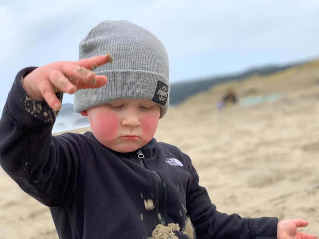 We were exhausted. We ordered pizza and went to bed early. Laura and David drove down for the day and we spent the morning on the beach where Weston ran with abandon. At one point Gracie went with Weston to the waters edge to collect some water for their castle. The waves had been coming in gently, gently. They leaned down, and like slow motion the BIGGEST wave hit them. It knocked Weston to the ground and tore him out of Gracie’s hands. He tumbled in the surf and Gracies grabbed him, Sarah was already there. He was so sad and wet in his soggy little down jacket and boots filled with water. Gracie was pretty wet too, the water had gone up and over her boots. They all trudged back to change. Scott and I stayed and strolled with Laura and David. It was then that I noticed that all the people on the beach were like us. Like Scott and I. Retired looking. Our age. Walking dogs and holding coffees.