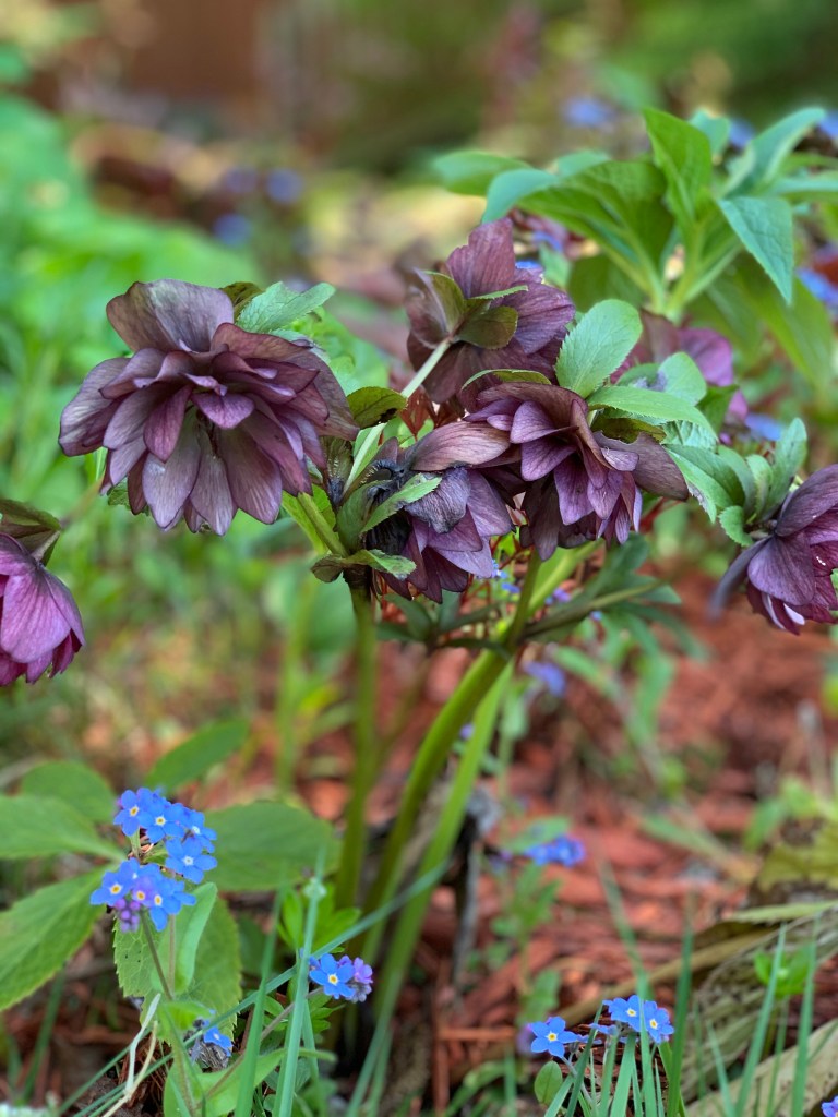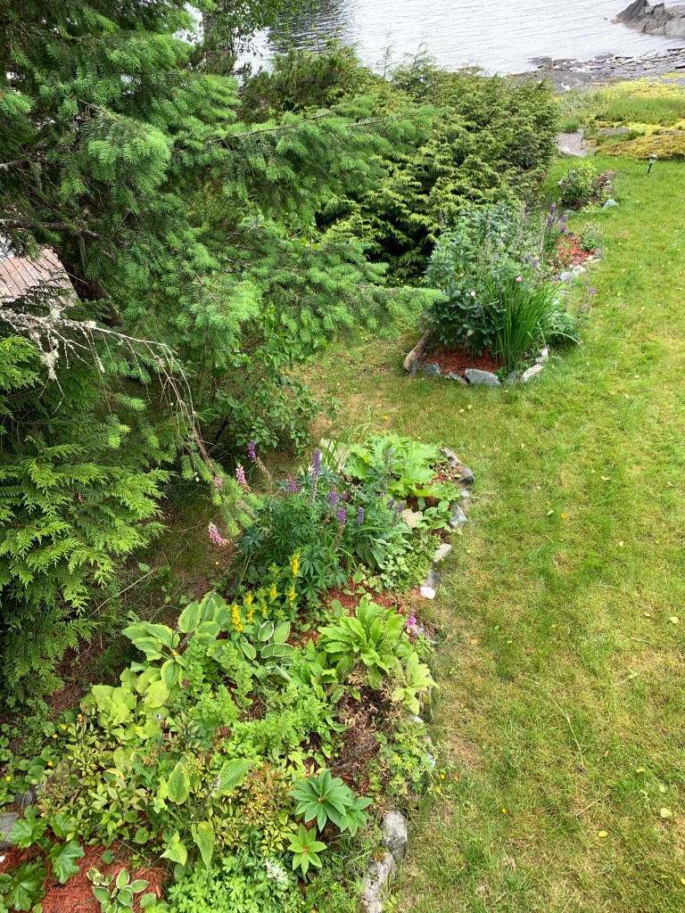 The woodland garden is nestled under the cedars and hemlock and there are lots of natural plants that find their way in! Huckleberries and forget-me-nots! The cottage garden is dense and peppered with flowers for cutting.