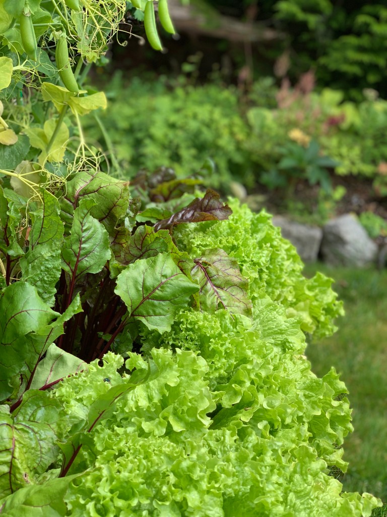 Scott built some planter boxes for veggies last Mother’s Day, and this year he got a beautiful waterfall maple that I hope will bring some rich fall colors.