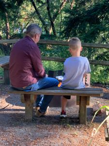 I think we all had a blast. But Scott and I were EXHAUSTED. Why was this camping trip so much more tiring than last year? We finally decided that maybe our little grandson had outgrown us a little. Not a lot, but just a little. He would much rather have made friends and played with them than playing a third round of Old Maid. Oh, and we camped longer this time AND last time we had Gracie with us. Gracie who piggy backed him the final mile of our four mile hike. We had spread the energy out amongst three adults rather than the two of us. Will we do it again next year? Of course. We will refine it a bit, anticipate things like beach toys and research the campground a little better. Find one that is not deadly dangerous and more importantly – has kids. Oh, and we will definitely wrangle another adult to join us.