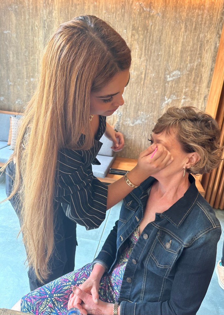 Flash forward a few years and I am at a three day Indian wedding in Cabo. A wedding where every day at 3:00 a large, bustling team of beauticians/hair dressers arrive wheeling suitcases full of products to get us ready for the evening festivities. We were encouraged to sign up, so Sarah Jane and I went to the spa to get our eyebrows and eyelashes done. Neither of us knew what “getting our eyelashes done” meant… extensions?